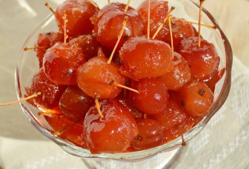 - Фрукти вимити, зрізати верхівку, проколоти. Хвостики рекомендується залишити для прикраси.