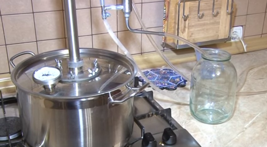Залити отриманий спиртовий розчин назад в апарат і повторити процес. Спочатку потрібно поставити мірну склянку і перші 50 мл вилити, оскільки тут міститься велика кількість шкідливих сивушних олій.![]()