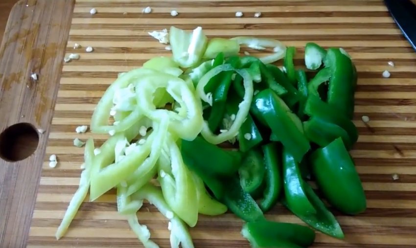 Нарізати перець соломкою.![]()