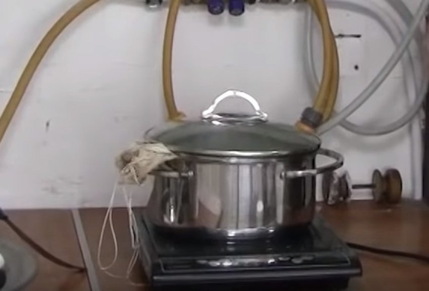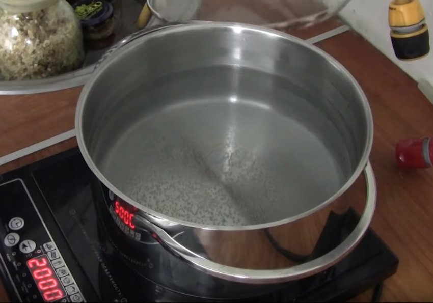 Узяти велику каструлю з товстим дном, налити в неї 3 л води і поставити на великий вогонь. Дочекатися появи перших бульбашок на дні (не доводити до кипіння). З цієї кількості інгредієнтів вийде 2,5-3 л напою.![]()