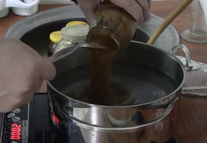У гарячу рідину поступово викласти 1 кг меду, добре перемішати.![]()