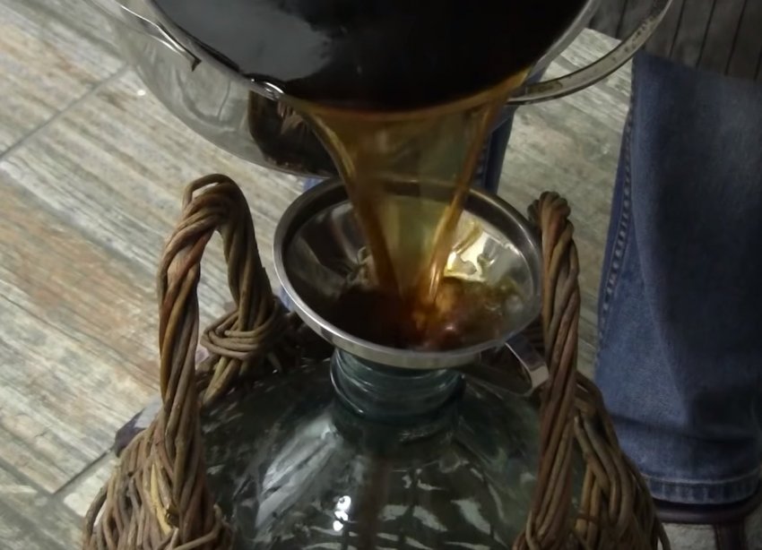 У посуд із рідиною, що залишилася, всипати дріжджі, почекати активного піноутворення, вилити в ємність для бродіння.![]()