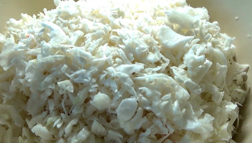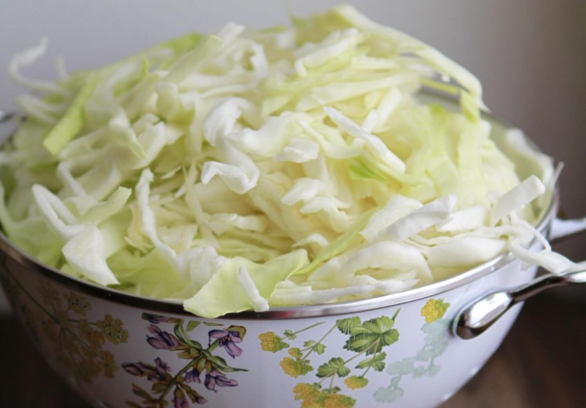 - Розділити качан на частини і нашаткувати тонкою соломкою. Скласти в глибоку миску.