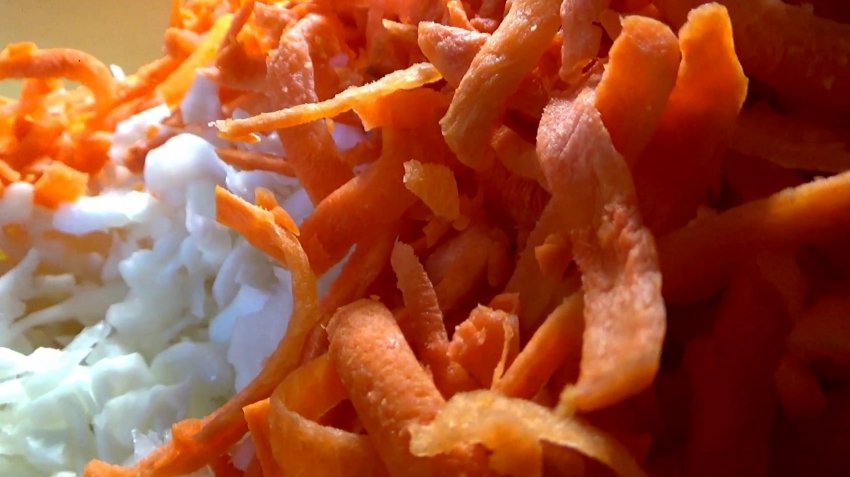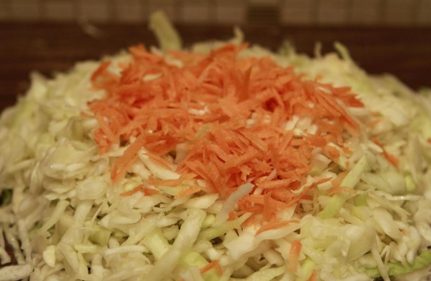 - Перемішати капусту з натертою морквою.