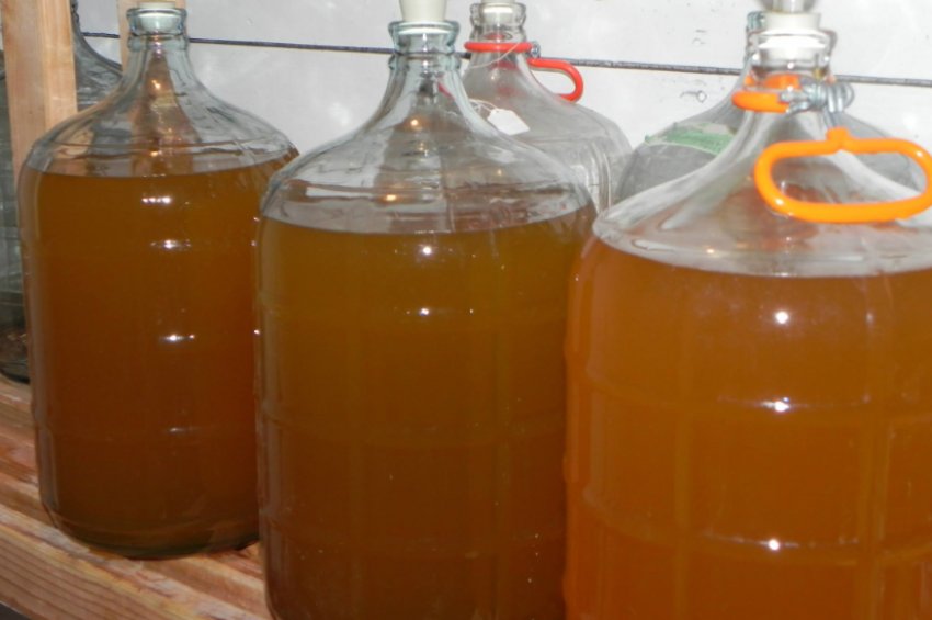 Вилити проціджену рідину в 10-літрову скляну бутель і закрити кришкою. Такий напій уже можна пити, але краще залишити на півроку в темному прохолодному місці, щоб напій "дозрів" і став колючим.![]()