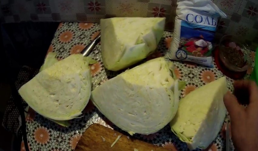 Спочатку знадобиться нарізати капустяний качан.![]()