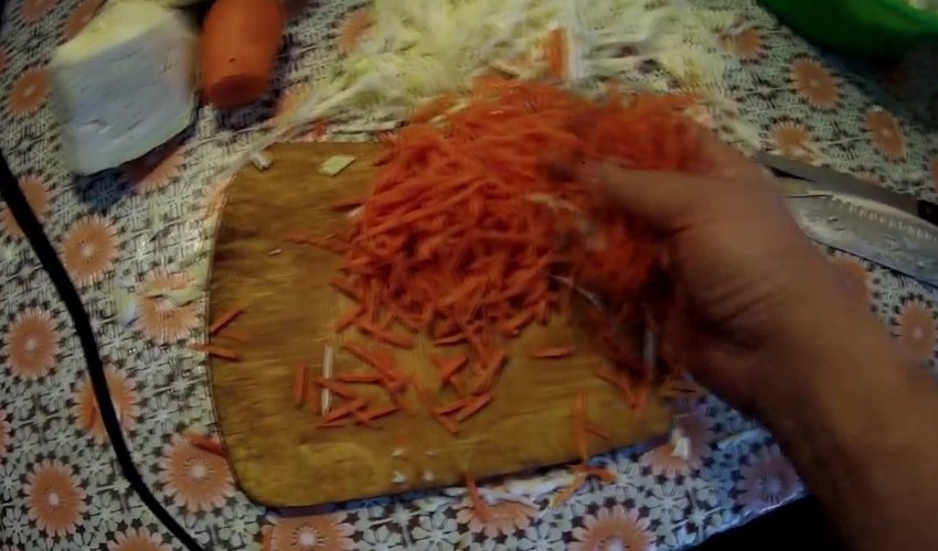 Верхнє листя потрібно зняти, а сам качан промити під водою і нарізати. Моркву зазвичай натирають на крупній тертці.
