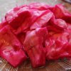 - Буряк очищають від шкірки і нарізають разом із часником на тонкі пластини.
