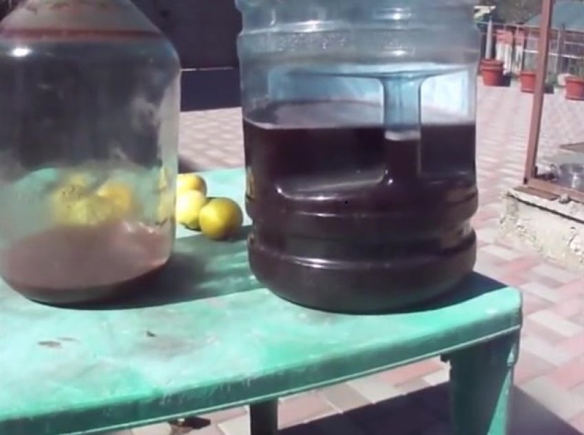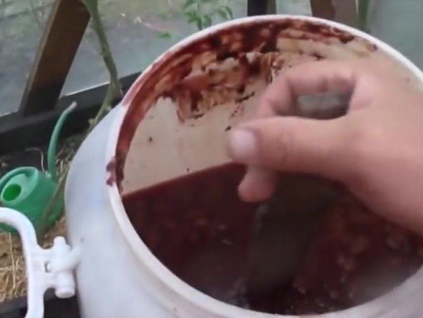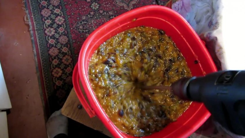 Залишити 1-2 дні для самобродіння. Перелити в ємність і додати 9 л води.![]()