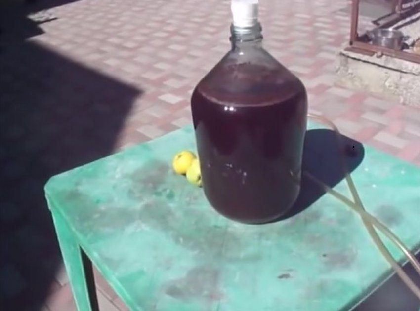 Прибрати ємність у темне прохолодне приміщення, +15...+18°С на 7-10 днів. Відокремити молоде вино від осаду, переливаючи в іншу ємність, робити це періодично в міру утворення. Стежити за бродінням протягом 2-3 місяців, за температури +16...+18°С у темному місці.![]()
