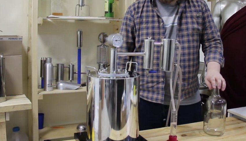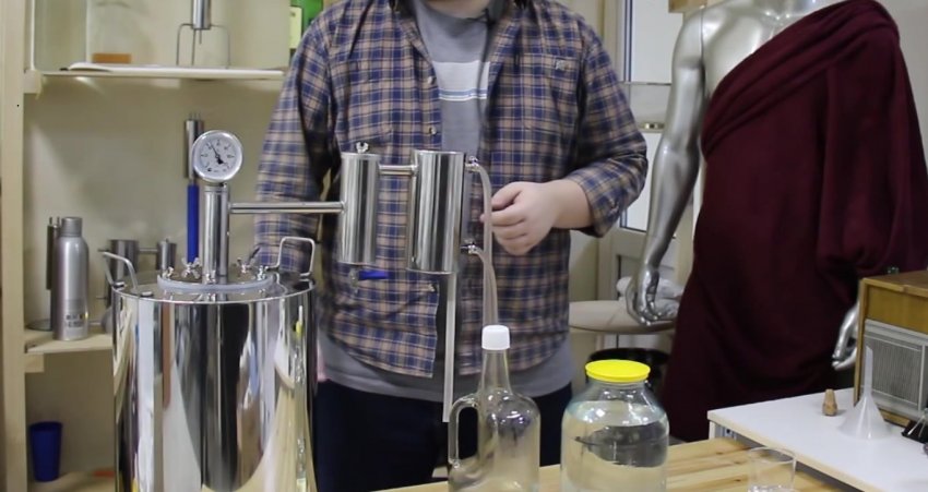 - Спирт-сирець відібрати в окремий посуд до зниження вмісту спирту до 35%.