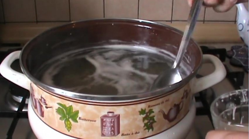 - Окремо у двох літрах гарячої води розчинити цукор і довести до кипіння.
