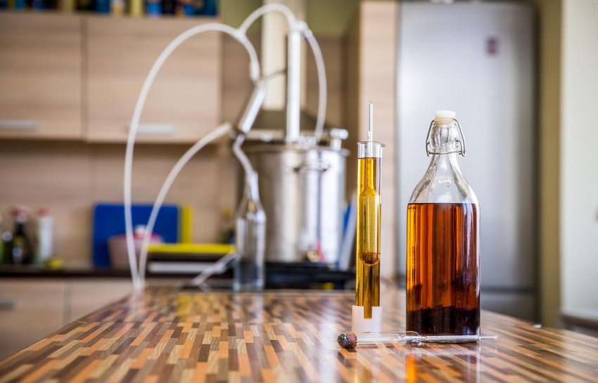 - На початку перегонки збирають "первинні голови", обсяг яких становить 1% від усього обсягу браги.