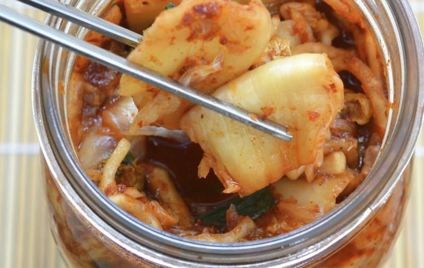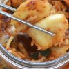 - Пекінку нашаткувати, залити гарячою водою. Відставити на 12 годин.