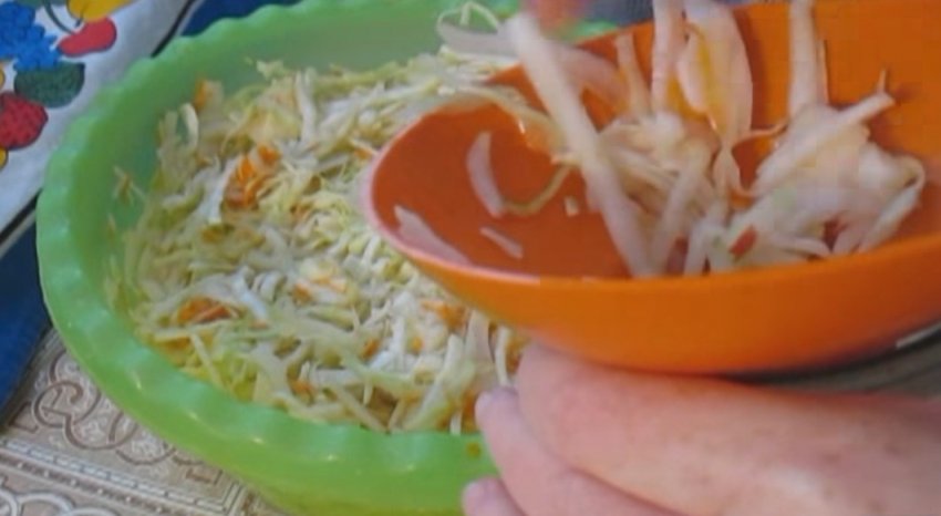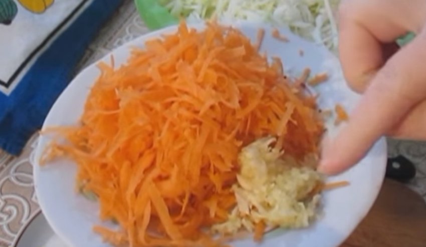 Моркву натерти на дрібній тертці для салатів, додати до капусти.![]()
