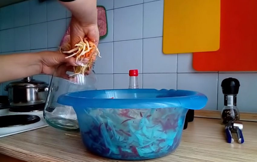 - Змішати капусту, моркву, буряк, чилі та часник.