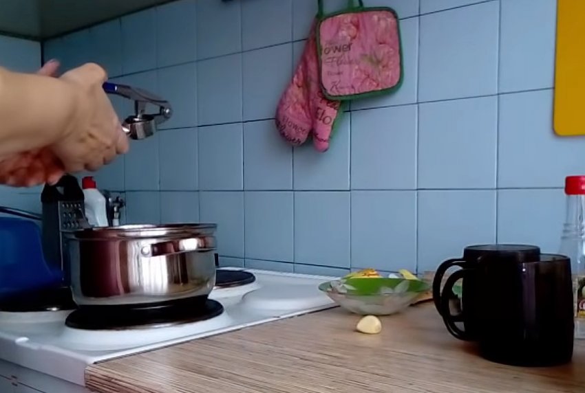 - Налити воду в каструлю, додати сіль і цукор.