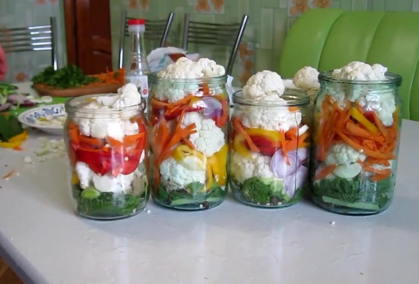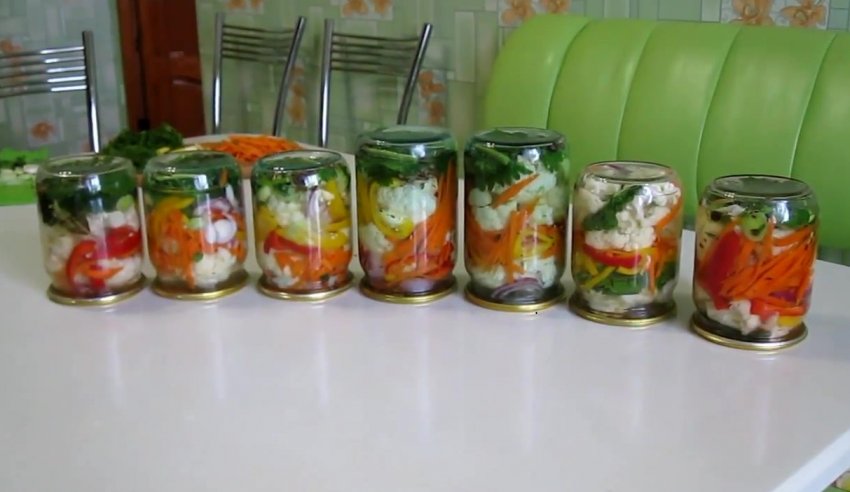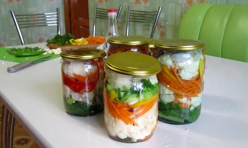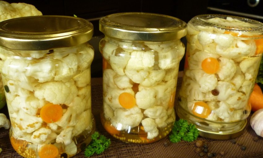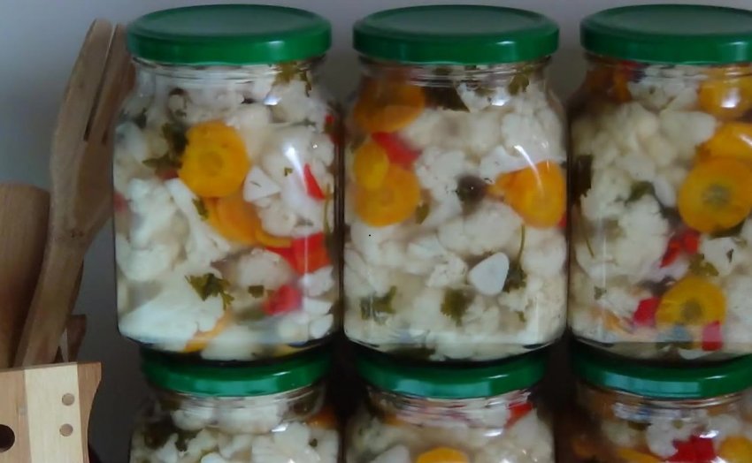 У цвітній капусті міститься велика кількість вітамінів і мінералів. Її рекомендують вводити в раціон і дорослим, і дітям. Однак зберігається цей корисний овоч недовго. Щоб мати можливість вживати капусту впродовж усієї зими, її можна заготовлювати шляхом консервації. У статті наведено цікаві рецепти з фото смачних делікатесних овочевих салатів.