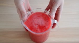 Починати приготування десерту необхідно з підготовки соку, для чого м'якоть треба відокремити від кірки кавуна і пропустити через соковижималку.![]()