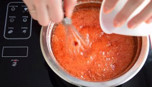 - Після години варіння вмішати желатин, розведений у воді, і цедру апельсина.