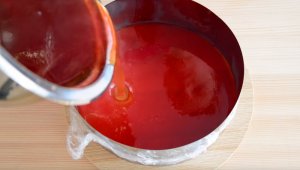 Вилити сік у сотейник і нагріти до температури в +60°С.![]()