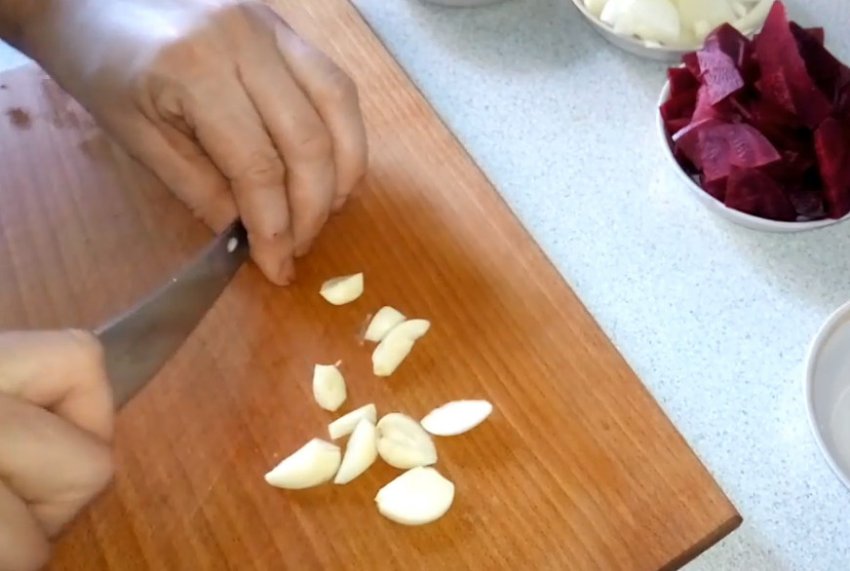 Кожен зубок часнику розрізати на кілька частин.![]()