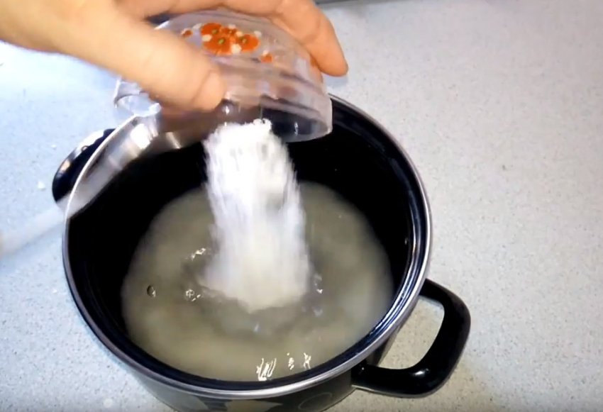 - Приготувати маринад: змішати воду, оцет, сіль і цукор, довести до кипіння.