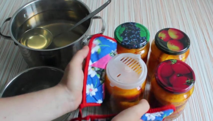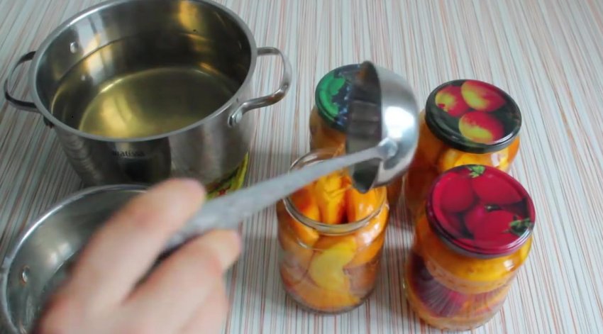 Закупорені банки з персиками перевертають кришками вниз, загортають чимось теплим і дають вмісту охолонути. Зберігати продукцію слід у прохолодному темному місці - коморі, погребі, холодильнику.