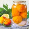 Наріжте фрукти на половинки або часточки, видаліть кісточки. Помістіть плоди в стерилізовану банку.![]()