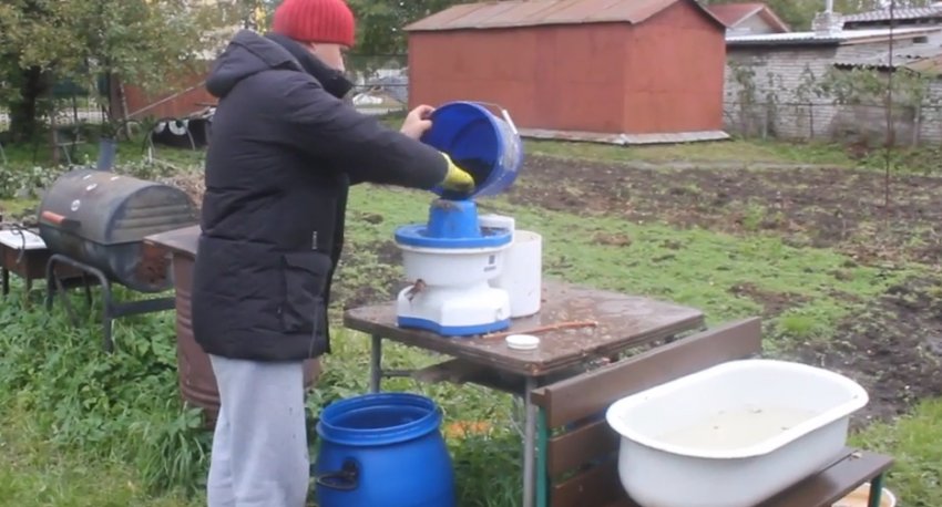 Перелити отриману субстанцію в спеціальний прес, віджати рідину.![]()