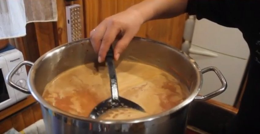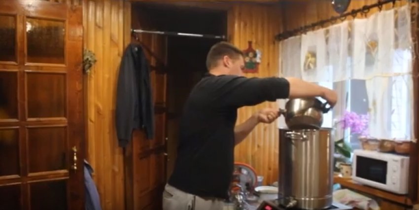 Поставити на вогонь, накрити кришкою і варити доти, доки температура продукту не підніметься до +95ºС. Якщо приладу для зміни температури рідини в господарстві немає, орієнтуватися слід на появу дрібних бульбашок на дні каструлі.![]()
