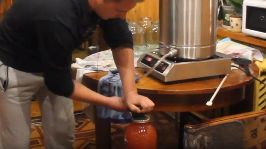 Коли банка наповниться, накрити її кришкою і закатати.![]()