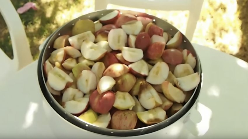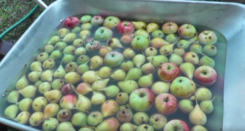 - фрукти добре промити під проточною водою (якщо яблуню не обробляли отрутохімікатами, процедура потрібна просто для того, щоб змити з поверхні яблук пил і бруд, але в разі, коли такої впевненості немає, кожен плід потрібно мити ретельніше, бажано з використанням м'якої губки, якою обробляється кожен плід);