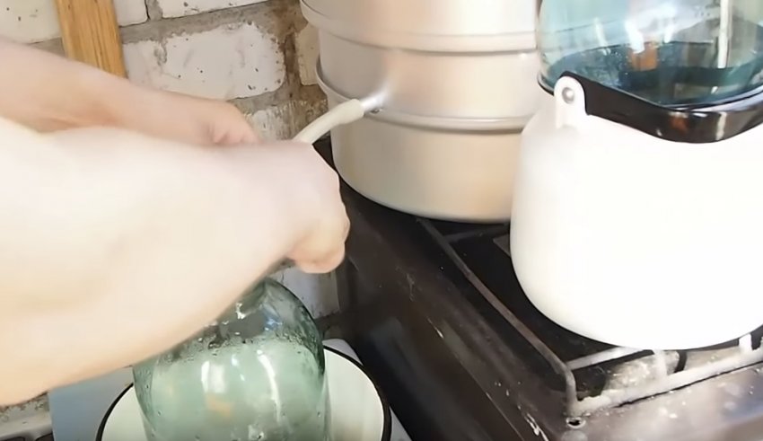 На рівні "соковідвідної" трубочки встановити попередньо простерилізовану банку.![]()