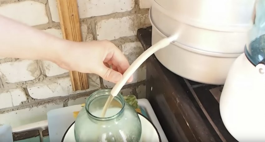 Приблизно через 40-60 хвилин зняти затиск з кінця трубки, після чого з носика в банку почне стікати готовий і вже пастеризований сік.![]()