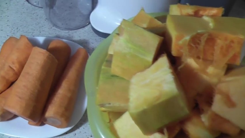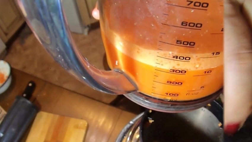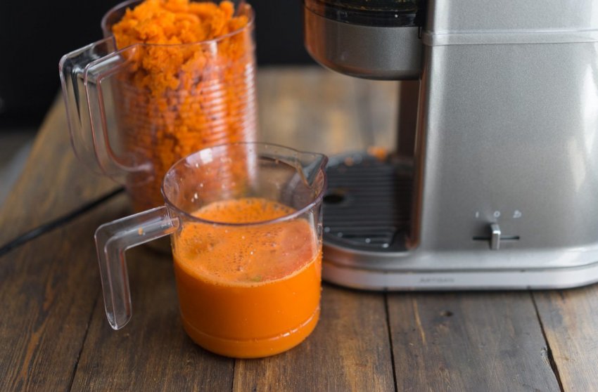- Пропустіть морквину через соковижималку, отриману рідину перелийте в окрему ємність.