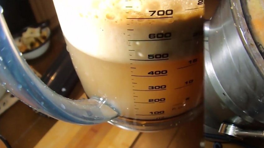 Пропустіть коренеплід через соковижималку, отриману рідину перелийте в окрему ємність.![]()
