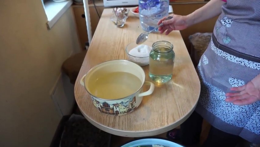 - Приготувати розсіл із 9 л води та 7 кг солі.