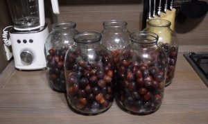 Спершу необхідно ретельно промити сливи. Кісточку не витягувати. Ягоди розсипати по банках, щоб у кожній вони займали приблизно половину.![]()