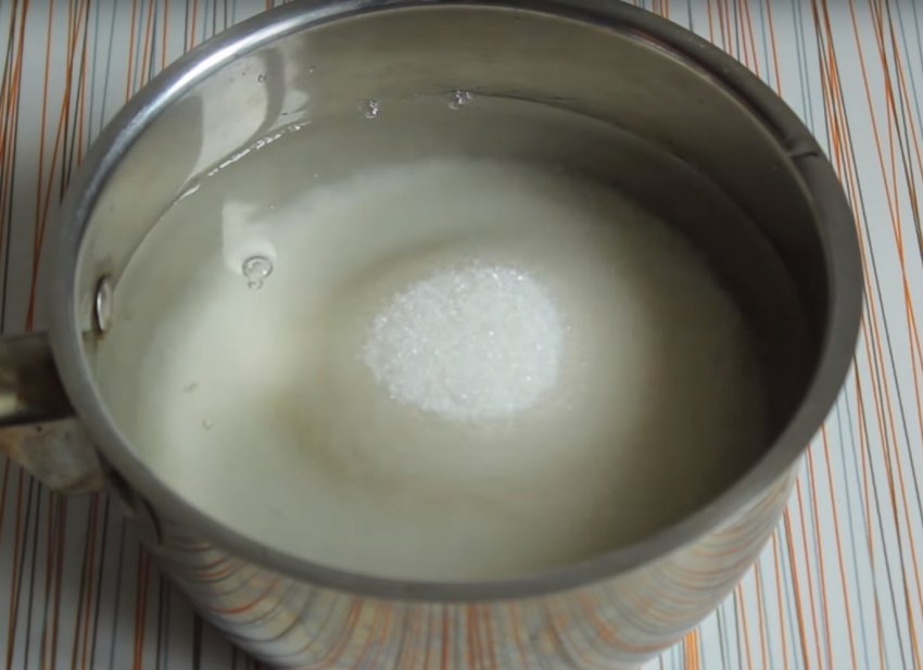 - З води і цукру зварити сироп. Для цього в каструльці змочіть цукор водою і помішуйте до повного розчинення. Після того, як закипить, поставте на невеликий вогонь і варіть ще 5 хвилин. Сироп виходить досить густим.