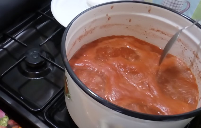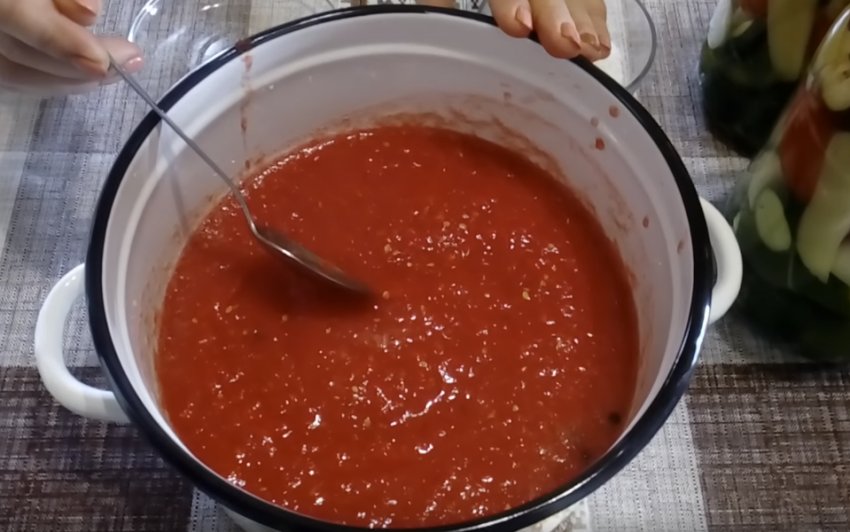Закриті банки прокотити по столу для того, щоб томат рівномірно розподілився, оскільки він дуже густий.![]()