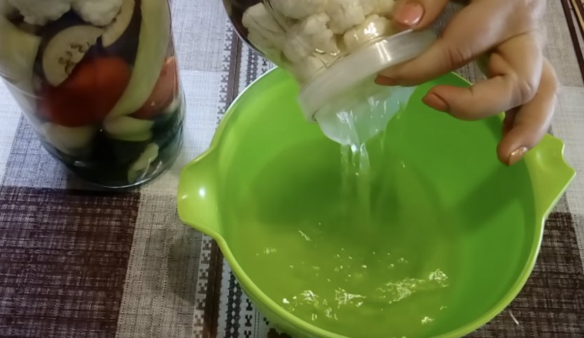 Головку цвітної капусти миють і замочують на 5 хвилин у розчині солоної води. Якщо в суцвіттях є комахи, то витягти їх за допомогою проточної води не вийде, а в такому розчині вони швидко спливуть. Якщо цього не зробити, то готовий продукт може виявитися безнадійно зіпсованим. Потім її ділять на суцвіття.