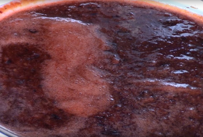 - Посуд виставляється в духовку, розігріту до 180°С. Час приготування - 20 хвилин, після чого повидло дістають і перемішують.