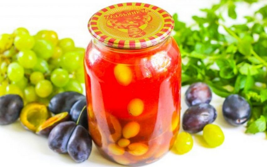 Компоти з виноградом роблять із додаванням різних фруктів, які відтіняють зайву кислоту і терпкість виноградного смаку.