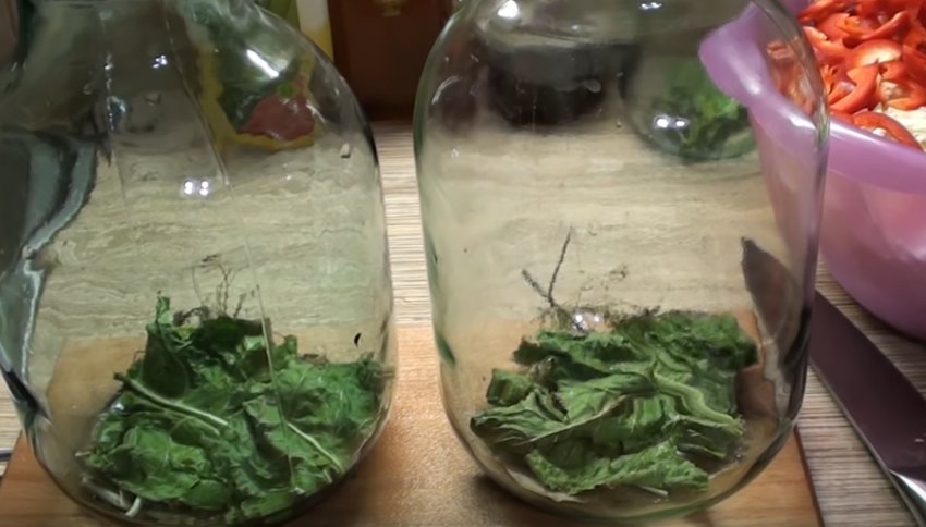 - На дно ємності покласти листя хрону, на нього викласти всі спеції.