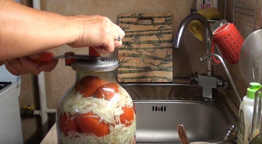 - Перекласти заготовку в 3-літрову ємність і закатати кришкою.