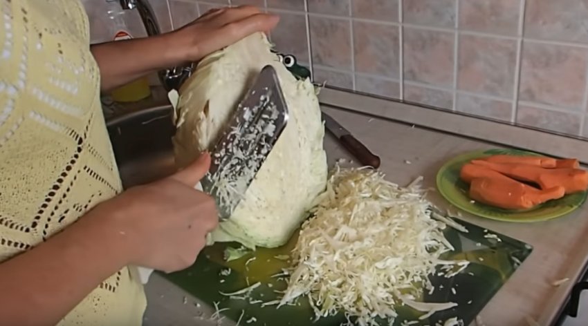 Вимити качан, порубати звичним способом: на спеціальній тертці, на комбайні або звичайним ножем.![]()