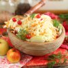 - Узяти щільний качан пізньої білокачанної капусти. Підготувати яблука, найкраще підійдуть кисло-солодкі, кислі тверді сорти.