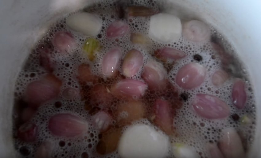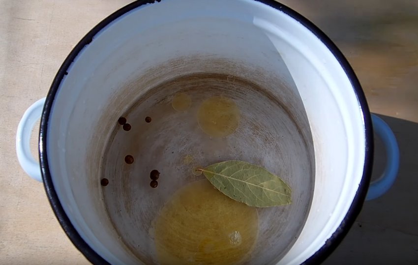 Після закипання розсолу в нього додають олію і дрібні очищені цибулини. Вміст каструлі варять три хвилини при слабкому кипінні.![]()