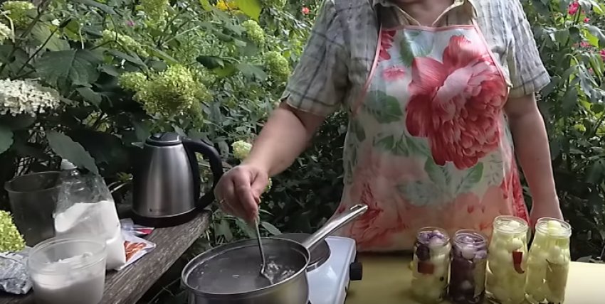У цей час господиня готує розсіл, довівши воду з цукром і сіллю до закипання. Останнім у розсіл вливають оцет, бо він може частково випаруватися під час кип'ятіння рідини.![]()